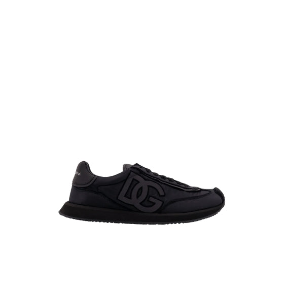 The Black Low-Top DG Cushion Nylon Sneakers by Dolce & Gabbana are a bold fusion...