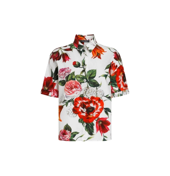 The Red Flower Print Poplin Short Sleeve Shirt by Dolce & Gabbana is a vibrant...