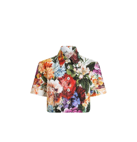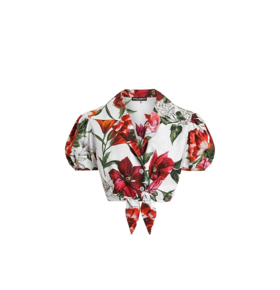 The Bouquet-Flower Print Poplin Cropped Shirt by Dolce & Gabbana is a fresh and feminine...