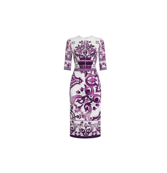 The Violet Majolica-Print Charmeuse Dress by Dolce & Gabbana is a refined expression of Mediterranean...
