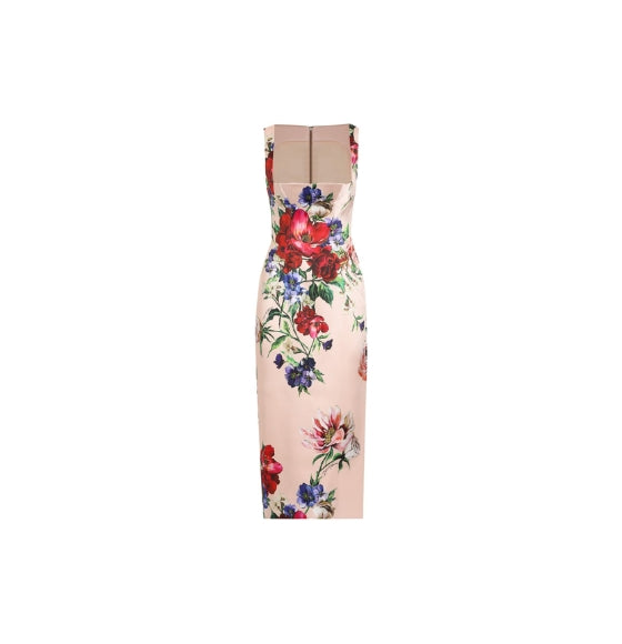 The Floral Print Deep Square Neck Satin Sheath Dress by Dolce & Gabbana is a...
