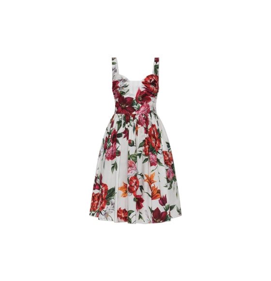 The Red Flower Print Poplin Corset Flared Dress by Dolce & Gabbana is a romantic...