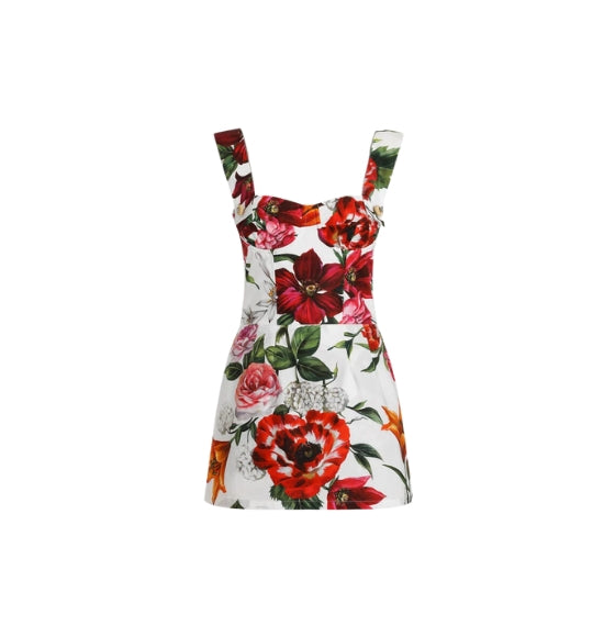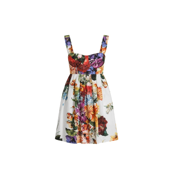 The Bouquet-Flower Print Poplin Corset Mini Dress by Dolce & Gabbana is a romantic celebration...