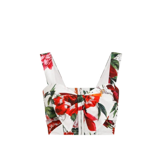 The Flower Print Poplin Bow Bra Top by Dolce & Gabbana is a romantic nod...