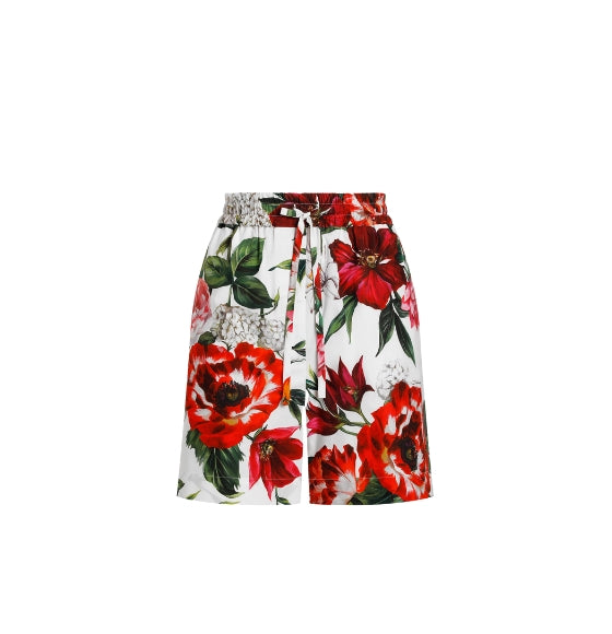 The Red Flower Print Poplin Shorts by Dolce & Gabbana are a vibrant expression of...