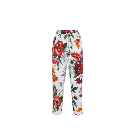 The Red Flower Print Poplin Long Trousers by Dolce & Gabbana are a bold expression...