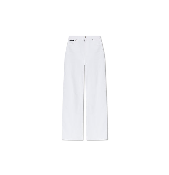 The White Logo Plaque Wide-Leg Jeans by Dolce & Gabbana are a crisp and contemporary...