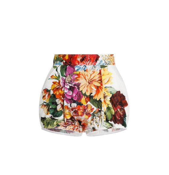 The Bouquet-Print Poplin Shorts by Dolce & Gabbana are a vibrant celebration of Italian artistry...