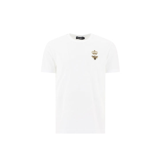 The White DG Crown & Bee Embroidered Cotton T-Shirt by Dolce & Gabbana is a...