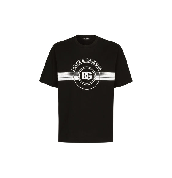 The Black Circular DG Logo Printed Crewneck T-Shirt by Dolce & Gabbana is a timeless...