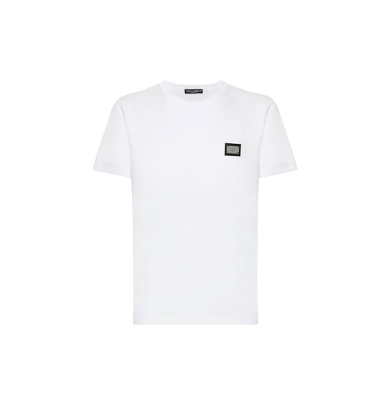 The White Logo-Plaque Crewneck T-shirt by Dolce & Gabbana is a crisp essential that blends...