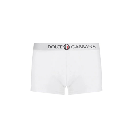 The White D&G Italian Crest Logo Waistband Boxers by Dolce & Gabbana are a refined...