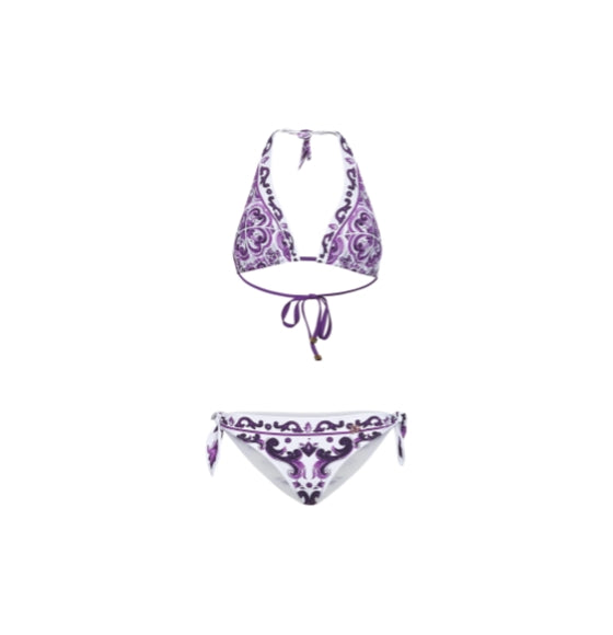 The Violet Majolica Print Bikini by Dolce & Gabbana is a radiant tribute to Sicilian...
