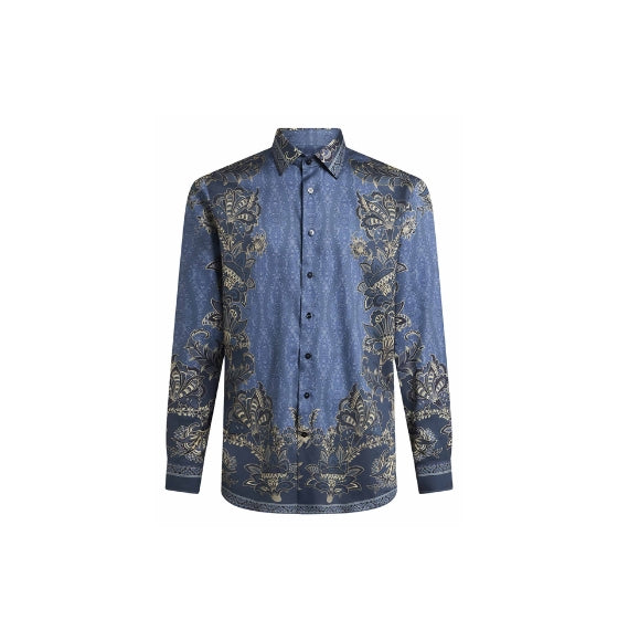 Blue Placed Print Long Sleeved Shirt