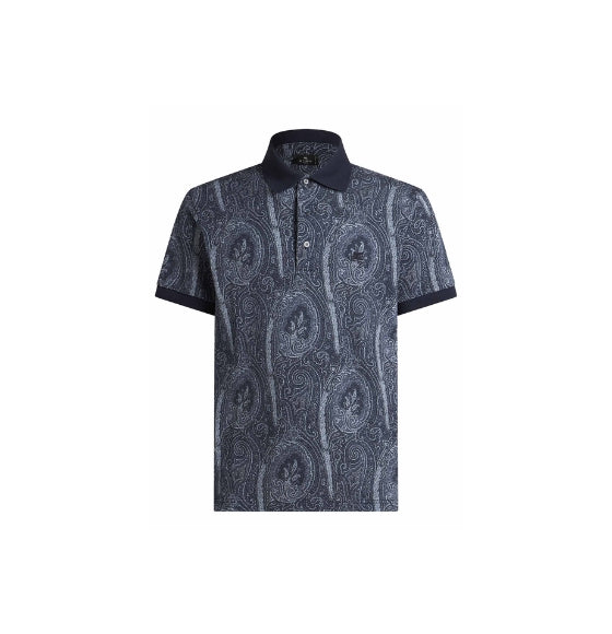 Navy Blue Paisley Print Polo Shirt