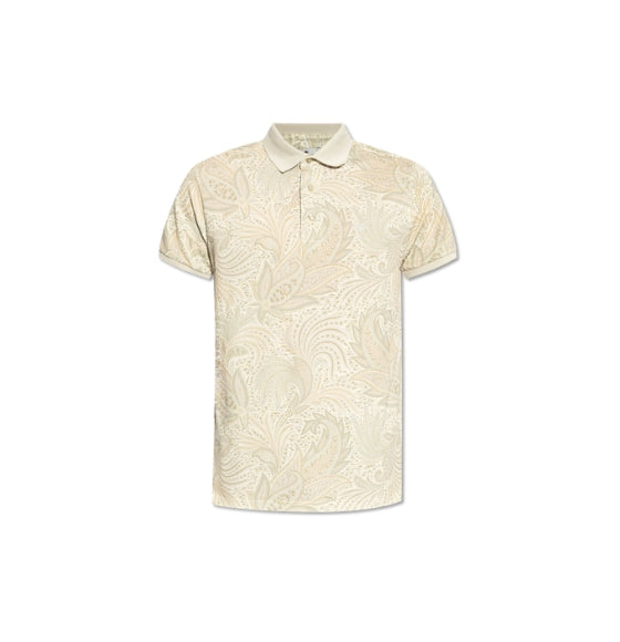 Beige Paisley Print Polo Shirt