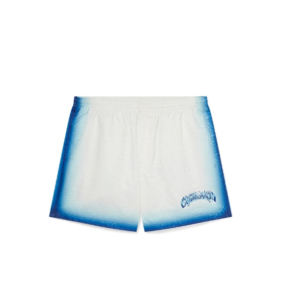 White and Blue Fade Printed Monogram Logo Swim Shorts