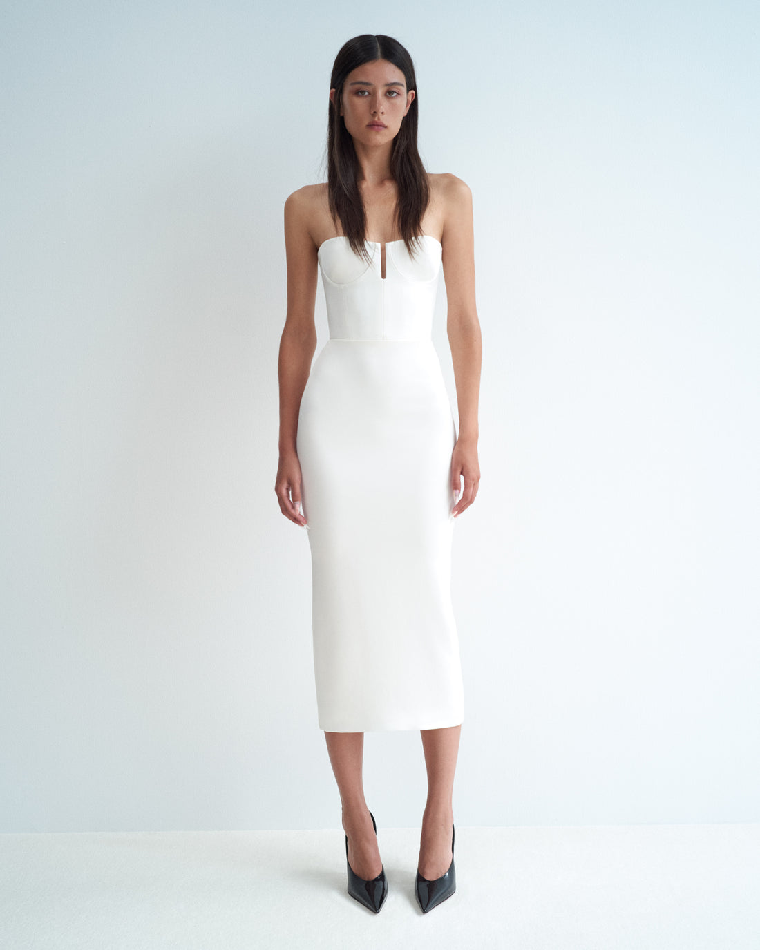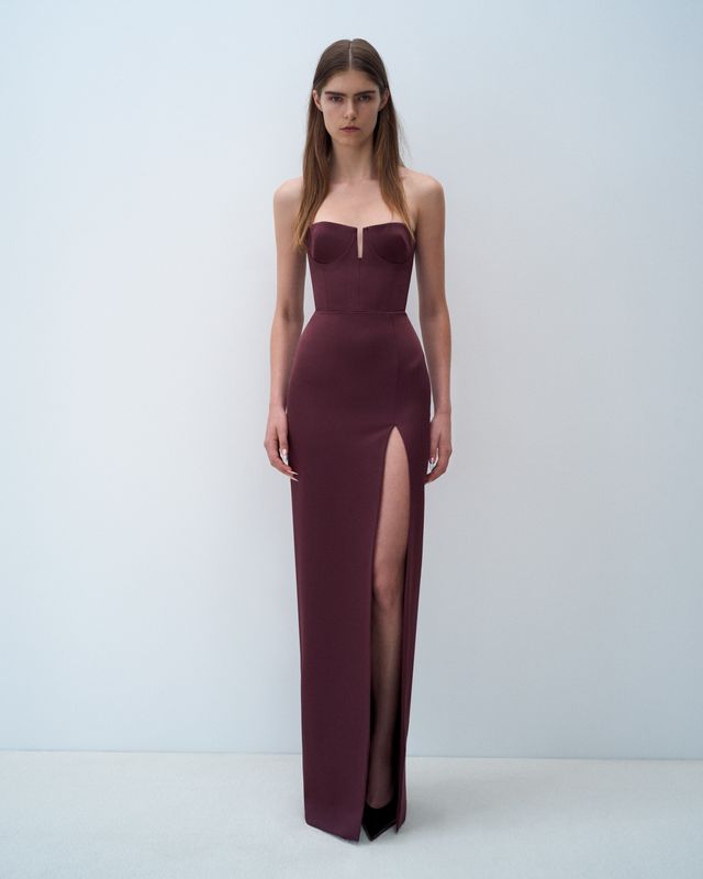 Strapless Cup Column in Satin Crepe