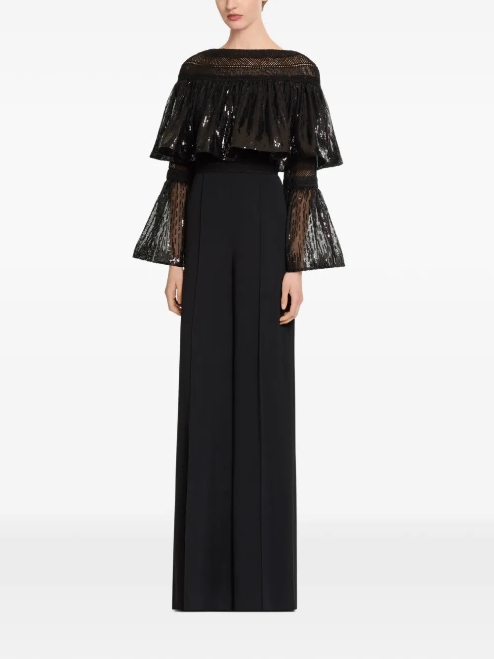 The Jacquemus Scala dress in black is a draped maxi dress with a fitted bodice...