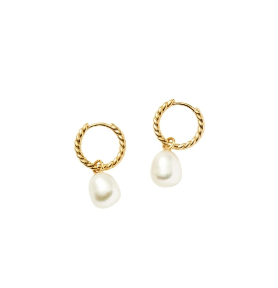 Small Pearl Drop Twisted Hoop Earrings