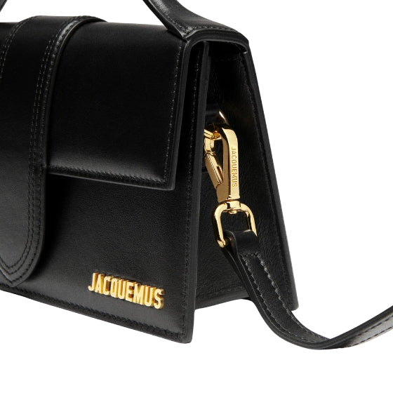 The Black Bambino Large Leather Handbag by Jacquemus offers a sleek elongated update to the label’s signature style. Made in Italy from smooth leather, this minimalist design features a flap closure, slim shoulder strap, and gold-tone logo lettering.