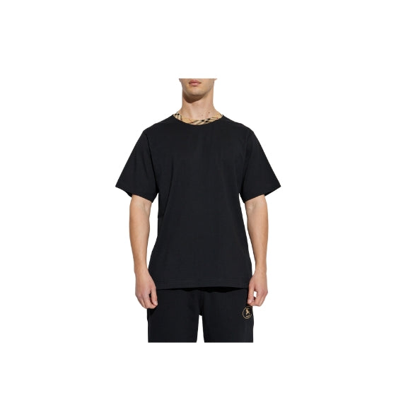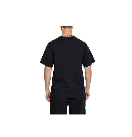 The Black Check-Trim Cotton T-Shirt by Burberry effortlessly blends casual ease with signature heritage accents. Crafted in Portugal from lightweight cotton jersey, this relaxed-fit tee is framed with iconic Sand Check taping around the neckline.