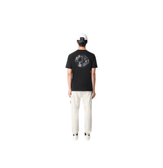 The Black Stone Island Round Print T-Shirt showcases the brand’s bold attitude with a striking reflective compass print at the back. Cut from organic cotton jersey, this slim-fit tee is soft and breathable—perfect for making a statement while keeping comfort front and center.
