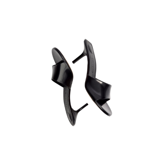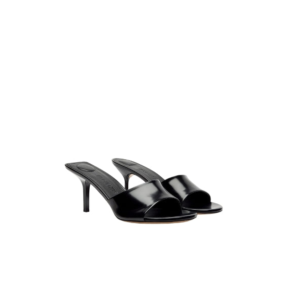 The Black Cubisto Round-Toe Mule by Jacquemus deliver a bold architectural statement. Expertly crafted in Italy from smooth leather, the heeled sandal features a round toe and a minimalist design.
