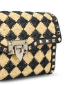 The Black Small Rockstud Shoulder Bag by Valentino Garavani adds a bold edge to any look with its platinum-finish studs. Designed in Italy, it features a secure hook-flap closure and an adjustable shoulder strap, blending contemporary confidence with timeless elegance.