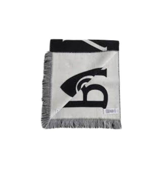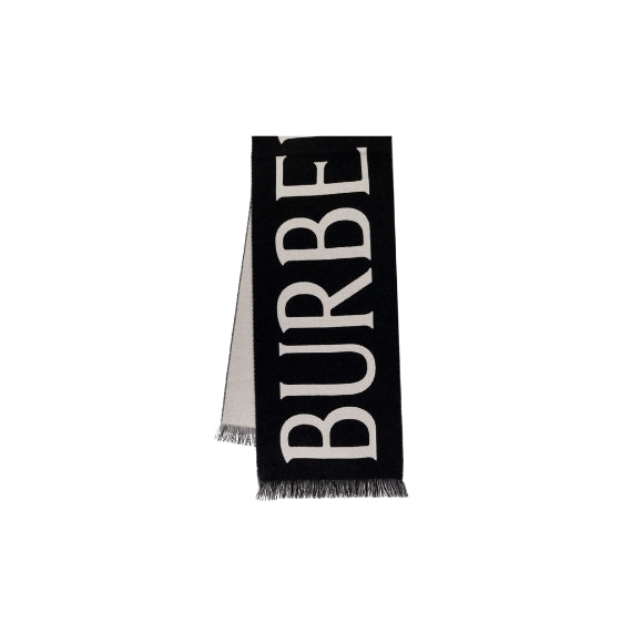The Black Wool Logo Scarf by Burberry is a graphic-luxe essential for the season. Crafted in Italy from 100% Merino wool, this sleek rectangular scarf features bold oversized Burberry logo lettering, subtle two-tone fringed edges, and a reversible design offering versatile styling options.