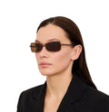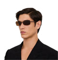 The Brown Zebra Statzione Sunglasses by Jacquemus inject bold personality into classic shades. These rectangular frames feature adjustable nose pads, solid brown lenses with UV 400 protection, and sleek black temple tips.