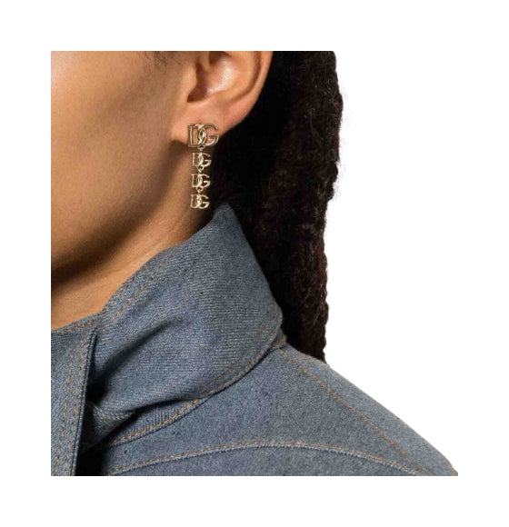 The Gold DG Multilogo Pendant Earrings by Dolce & Gabbana are a bold statement of opulence and identity. Expertly crafted in Italy from gold-tone hammered brass, these striking earrings feature teardrop-shaped pendants engraved with the iconic DG logo. The clip-on fastening ensures a secure and comfortable fit for both pierced and non-pierced ears, while the elongated silhouette adds dramatic flair to any ensemble. Whether paired with sleek tailoring or flowing eveningwear, they bring unmistakable Dolce glamour to every look.