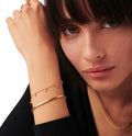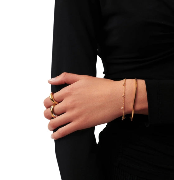 The Gold Interstellar Pavé Drop Bracelet from Missoma is a celestial-inspired piece that brings subtle sparkle to your wrist. Handcrafted from recycled sterling silver and plated in 18ct recycled gold vermeil, this delicate bracelet features a fine chain adorned with bezel-set cubic zirconia drop charms—each one catching the light like stars in the night sky. Its adjustable length ensures a perfect fit, whether worn solo or layered in a cosmic stack.