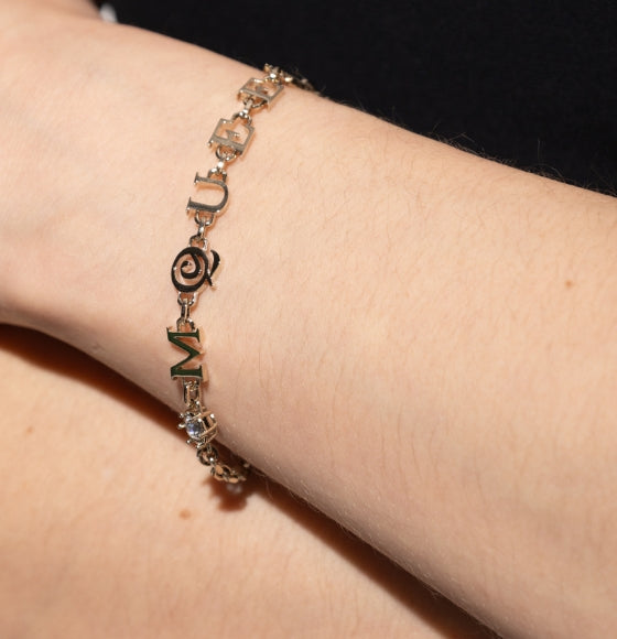 The Gold McQueen Logo Chain Bracelet from Alexander McQueen is a refined statement of modern elegance. Crafted in Italy from polished gold-tone brass, this sculptural bracelet features interlocking chain links and a bold McQueen logo plaque adorned with shimmering crystal detailing. Its adjustable length and sleek silhouette make it a versatile piece for both everyday sophistication and elevated styling.