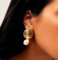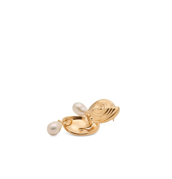 The Gold Spiral Detachable Pearl Drop Earrings by Missoma are a versatile blend of sculptural elegance and oceanic charm. Handcrafted in India and Thailand, these statement earrings feature a large spiral stud plated in 18ct recycled gold over brass, paired with a removable freshwater baroque pearl drop. The interchangeable design allows you to wear them as bold studs or with the pearl for added sophistication. Each pearl is naturally unique, celebrating organic irregularity and artisanal beauty. Lightweight yet impactful, they‰۪re perfect for both everyday wear and elevated occasions.