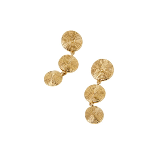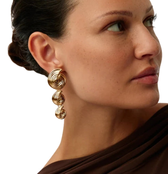 The Gold Spiral Statement Drop Earrings by Missoma are a bold celebration of sculptural elegance and contemporary design. Handcrafted in India and Thailand, these earrings feature interlinked spiral elements plated in 18ct recycled gold over brass, creating a dynamic silhouette that moves gracefully with every step. Their oversized form and polished finish make them a standout choice for elevating minimalist outfits or adding drama to eveningwear. Lightweight yet impactful, they‰۪re designed for pierced ears and come with a two-year warranty‰ÛÓmerging artistry, sustainability, and everyday luxury.