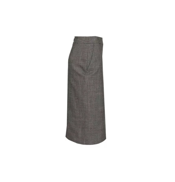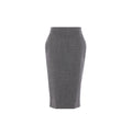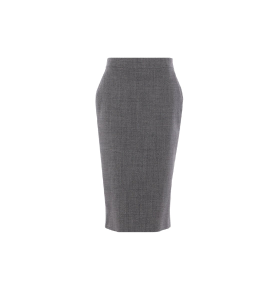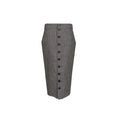 The Grey Buttons Detailed Pencil Midi Skirt from Alexander McQueen is a refined essential that blends tailored structure with timeless elegance. Crafted in Italy from pure wool, this high-waisted skirt features a sleek front button closure, straight hem, and a flattering midi length. Its minimalist silhouette and premium fabrication make it a versatile piece for both office sophistication and elevated everyday wear.
