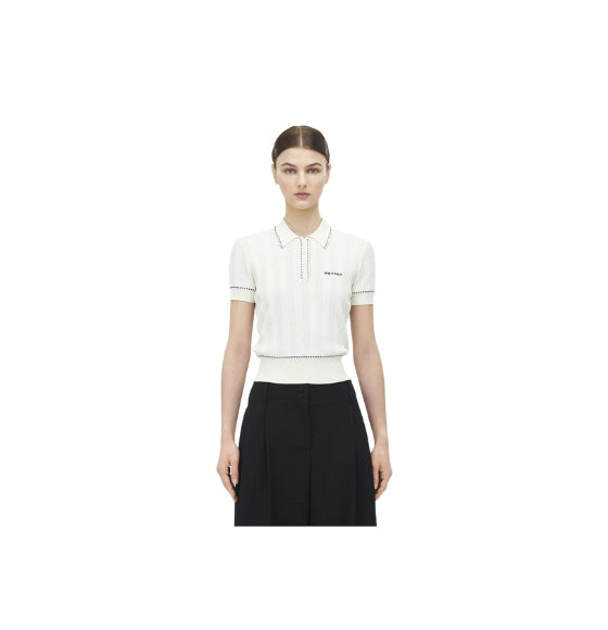 The Ivory Knitted Polo Shirt from Alexander McQueen is a refined staple that blends classic tailoring with contemporary texture. Crafted in Italy, this short-sleeved polo features a subtle textured knit pattern and a clean button-up placket. Its soft ivory hue and structured silhouette make it a versatile piece for both casual and elevated looks.