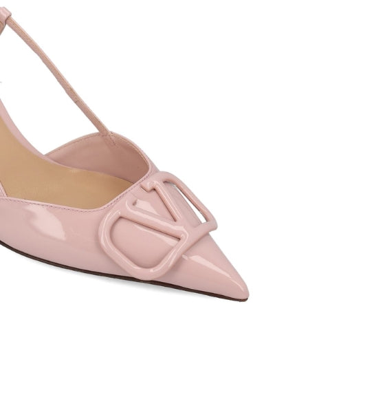 The Pink Signature V-Logo Patent Leather Slingbacks by Valentino Garavani are a sleek embodiment of modern elegance. Expertly crafted in Italy, these slingback pumps feature a pointed toe and a monochromatic blush pink patent leather finish that radiates sophistication. The design is elevated by the iconic gold-tone VLogo Signature plaque at the vamp, offering a bold yet refined statement. With an adjustable slingback strap and a moderate stiletto heel, they strike the perfect balance between comfort and glamour—ideal for both daytime polish and evening allure.